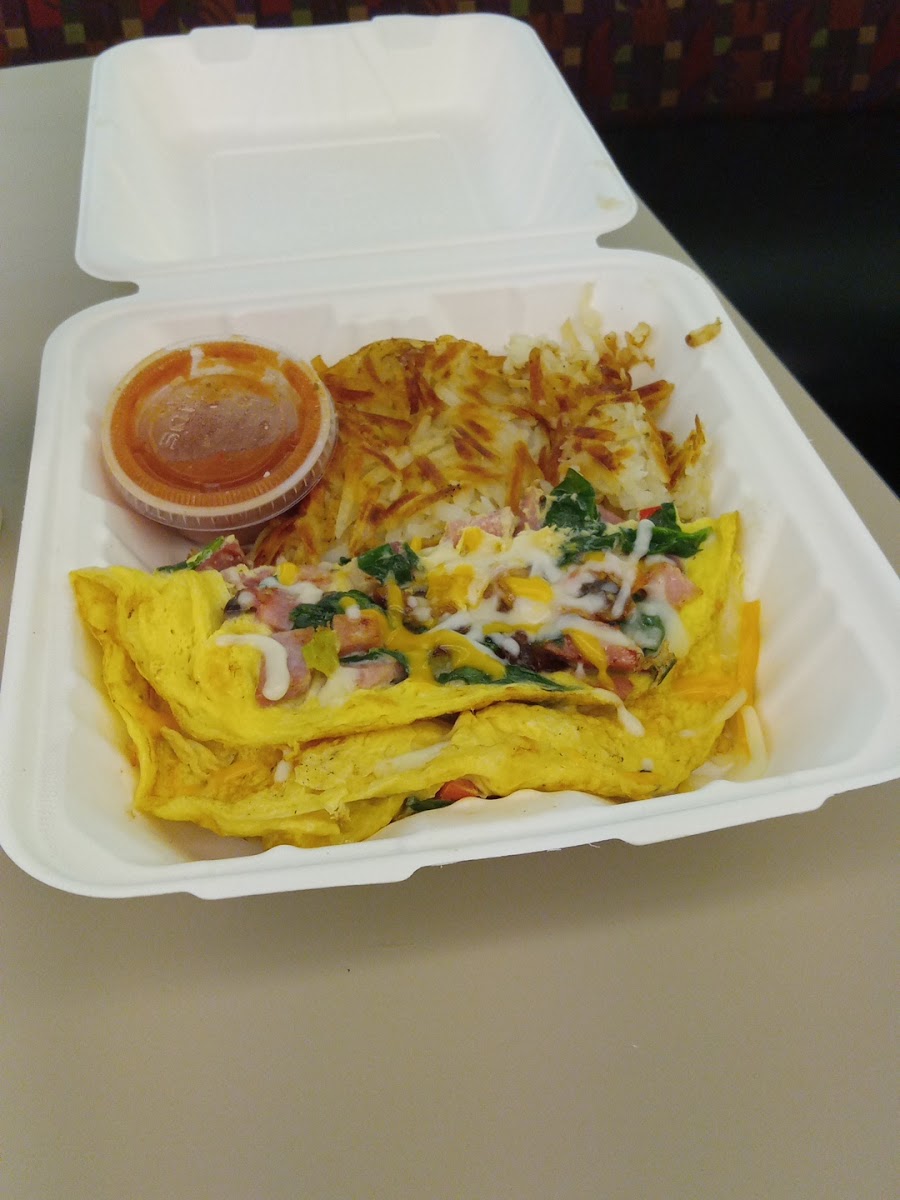 The vibe here leans toward straightforward and efficient, with a self-service ordering system that encourages a quick visit rather than lingering. It’s a spot that works well for a no-fuss breakfast or lunch break, especially for those who want fresh, consistent food without the flair of trendy cafes. The menu features a rotating variety of American-style breakfast items, with options like omelettes, egg scrambles, and unique daily specials such as chorizo burritos or Tex-Mex omelettes. There’s also a solid range of hearty lunch picks including sandwiches and breakfast tacos, often priced reasonably for the downtown location.
